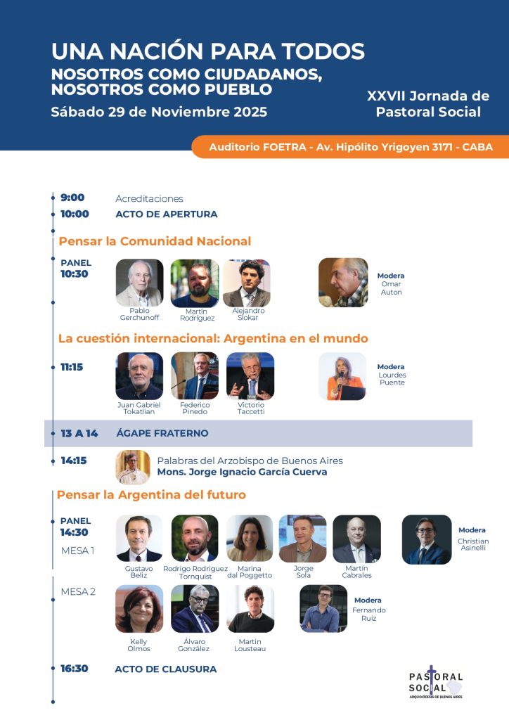 Bajo el lema «Una Nación para Todos. Nosotros como Ciudadanos, Nosotros como Pueblo», la jornada propone un espacio de encuentro, reflexión y compromiso para construir juntos una Argentina más justa, fraterna y solidaria.